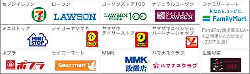 全国の郵便局または下記コンビニでお支払い出来ます。 お支払い額が100万円を超えますと、郵便局払いのみとなります。
